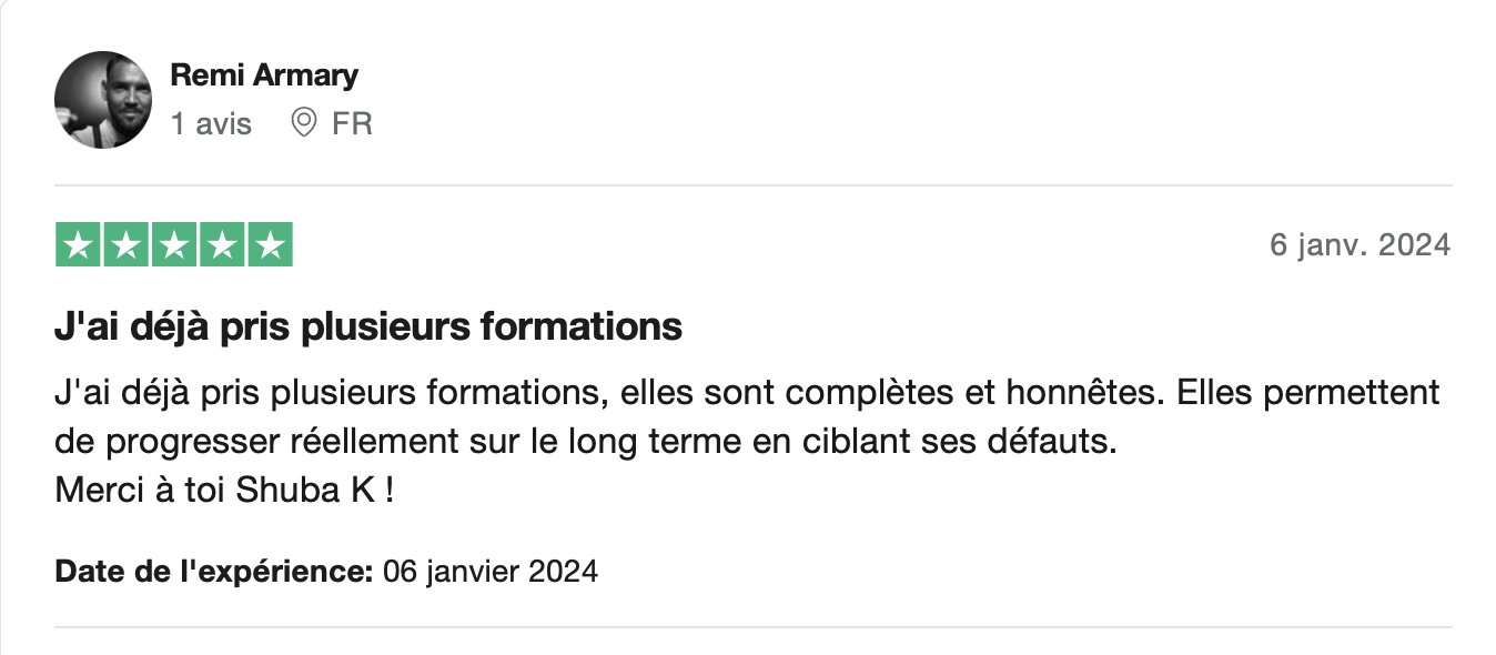 Du coup, voilà ce que je te propose : teste le programme, accède à l’ensemble de la formation, et si à un moment tu te dis “C’est pas pour moi”, envoie-moi un simple email dans les 15 jours suivant l’achat du programme.