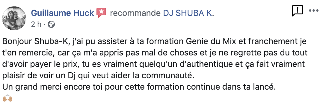 Par contre, si tu tournes en rond, que fais toujours les mêmes mix, que tu aimerais développer ta créativité et apprendre de nouvelles techniques pour rendre tes mixs percutants, je te recommande chaudement cette formation.