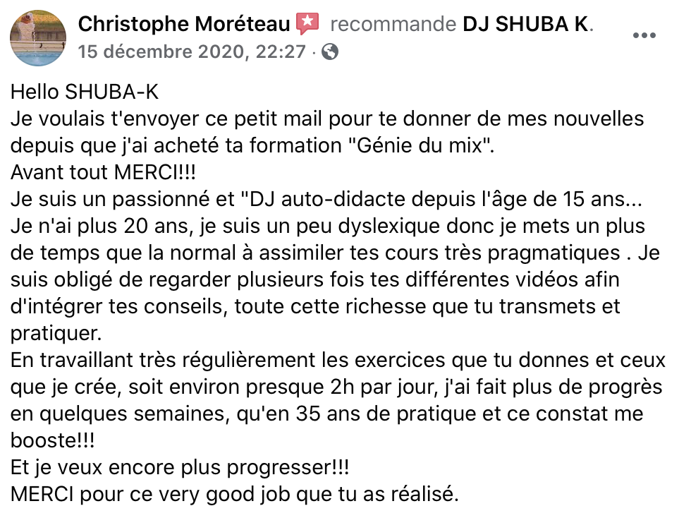 Dans tous les cas, je te fais reprendre toutes les bases à ma façon pour que tu puisses développer ton propre style peu importe ce que tu veux faire de tes platines.